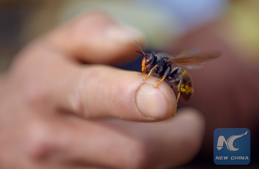 Villager Hu Min checks a queen wasp in Randahe Village of Lijiahe Town in Xuan'en County, Enshi Tujia and Miao Autonomous Prefecture, central China's Hubei Province, April 8, 2018. (Xinhua/Song Wen)