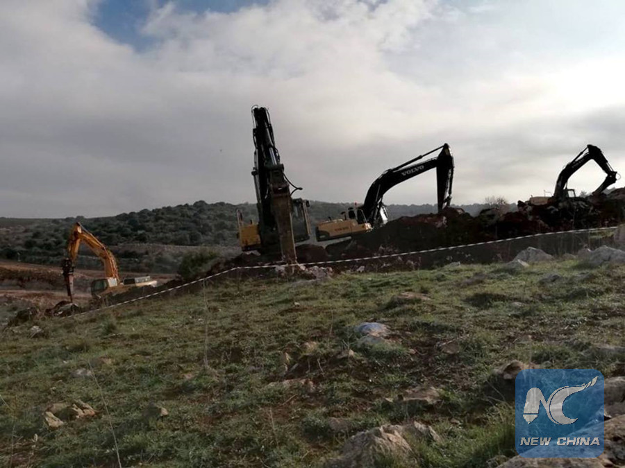 Israeli bulldozers are seen near the border fence on December 10, 2018. (Xinhua photo)