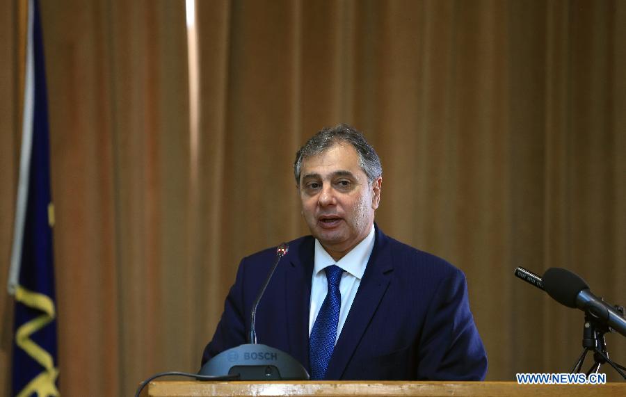 Vassilis Korkidis, president of Chamber of Commerce and Industry of Piraeus, addresses a forum themed "Belt and Road Initiative - The New Silk Road" in Piraeus, Greece, on Dec. 10, 2018. Greek businessmen and Chinese scholars voiced confidence in the prospects of Sino-Greek cooperation in the context of the Belt and Road Initiative during a forum held on Monday at Piraeus port, Greece's largest harbor which in recent years has become a strong symbol of win-win bilateral cooperation between the two countries. (Xinhua/Marios Lolos)