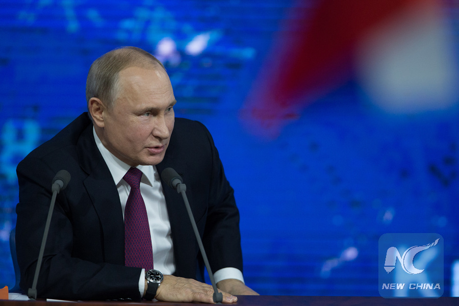 Russian President Vladimir Putin speaks at his annual press conference in Moscow, Russia, on Dec. 20, 2018. (Xinhua/Bai Xueqi)
