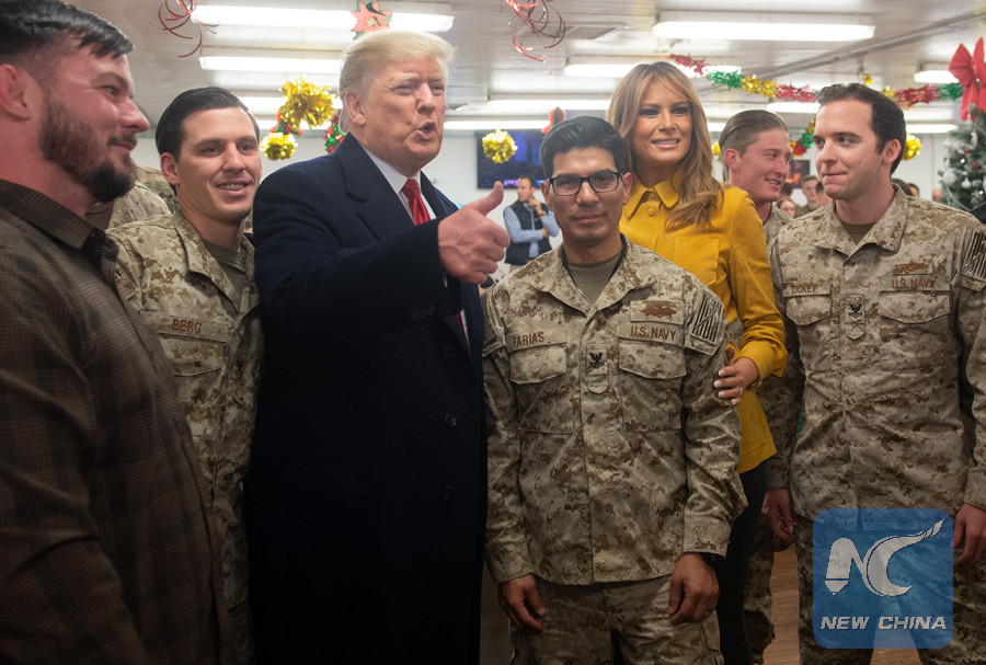 BAGHDAD, Dec. 26 (Xinhua) -- U.S. President Donald Trump visited the U.S. troops in Iraq to celebrate Christmas, the official Iraqiya television reported on Wednesday.