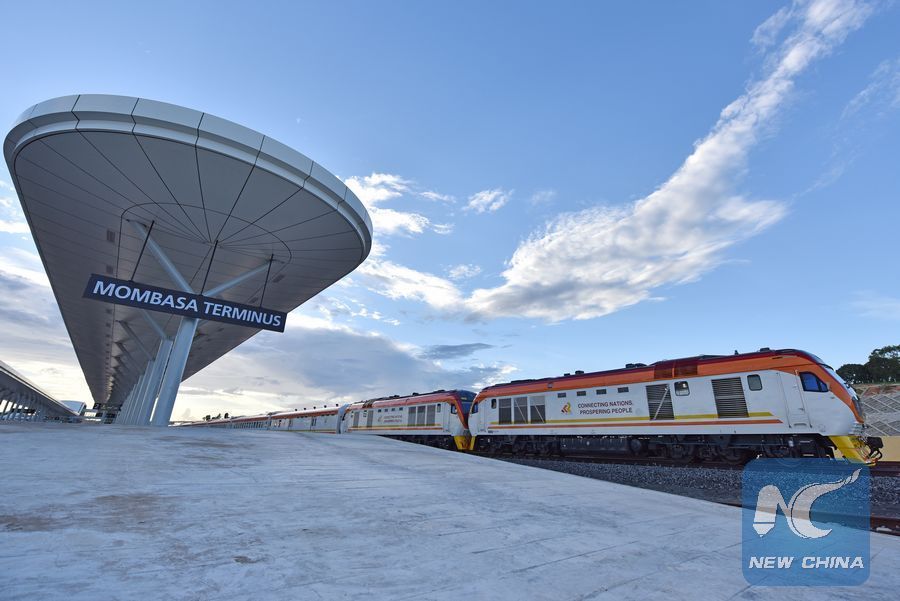 File photo shows a train runs out of one station of Kenya's Mombasa-Nairobi Railway on May 29, 2017.(Xinhua/Sun Ruibo)
