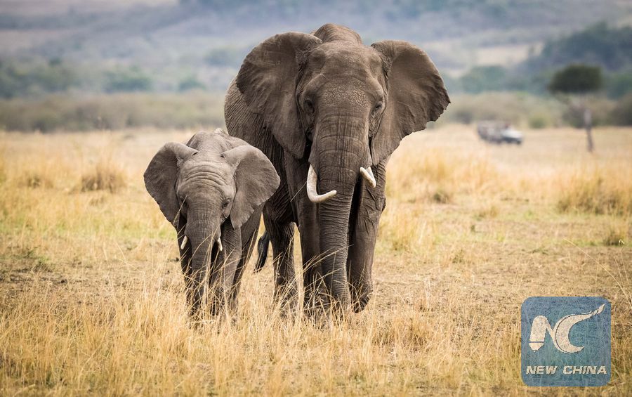File photo shows two elephants walk at the Maasai Mara National Reserve, Kenya, Aug. 28, 2017. (Xinhua/Lyu Shuai)