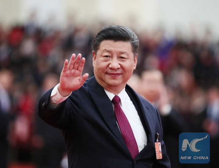 Chinese President Xi Jinping waves to deputies to the 13th National People's Congress (NPC) in Beijing, capital of China, March 20, 2018. (Xinhua/Lan Hongguang)