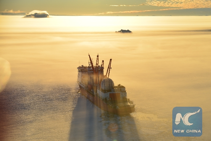 China's research icebreaker Xuelong travels between sheets of floating ice in Antarctica, Jan. 3, 2018. (Xinhua/Yang Dianliang)