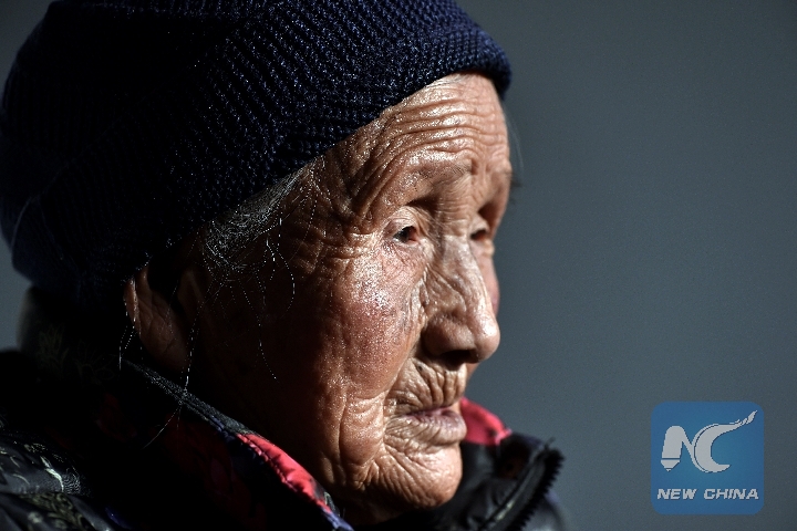 Photo taken on March 19, 2018 shows 90-year-old Pian Huanying at home in Nuanquan Village of Qinxian County, north China's Shanxi Province. In the autumn of 1942, Pian was abducted and abused by Japanese invaders at the age of 14. She was rescued by her relatives about 20 days later. After that, she was captured for three times. Some 400,000 women across Asia were forced to become sex slaves for the Japanese army during WWII. Nearly half of them were Chinese, according to the Research Center for Comfort Women. (Xinhua/Zhan Yan)