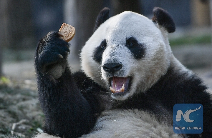 Photo taken on Jan. 16, 2018 shows a male giant panda named Hua Bao at the Dujiangyan base of the China conservation and research center for the giant pandas, in Dujiangyan city of southwest China's Sichuan province. A pair of giant pandas left the center for Finland on Jan. 17, 2018 and will live in Ahtari zoo for 15 years. (Xinhua/Xue Yubin)