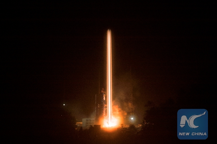 In this photo taken with a long-time exposure, China sends two new satellites of the BeiDou Navigation Satellite System (BDS) into space on a Long March-3B carrier rocket from the Xichang Satellite Launch Center in southwest China's Sichuan Province, on Nov. 19, 2018. (Xinhua/Ju Zhenhua)