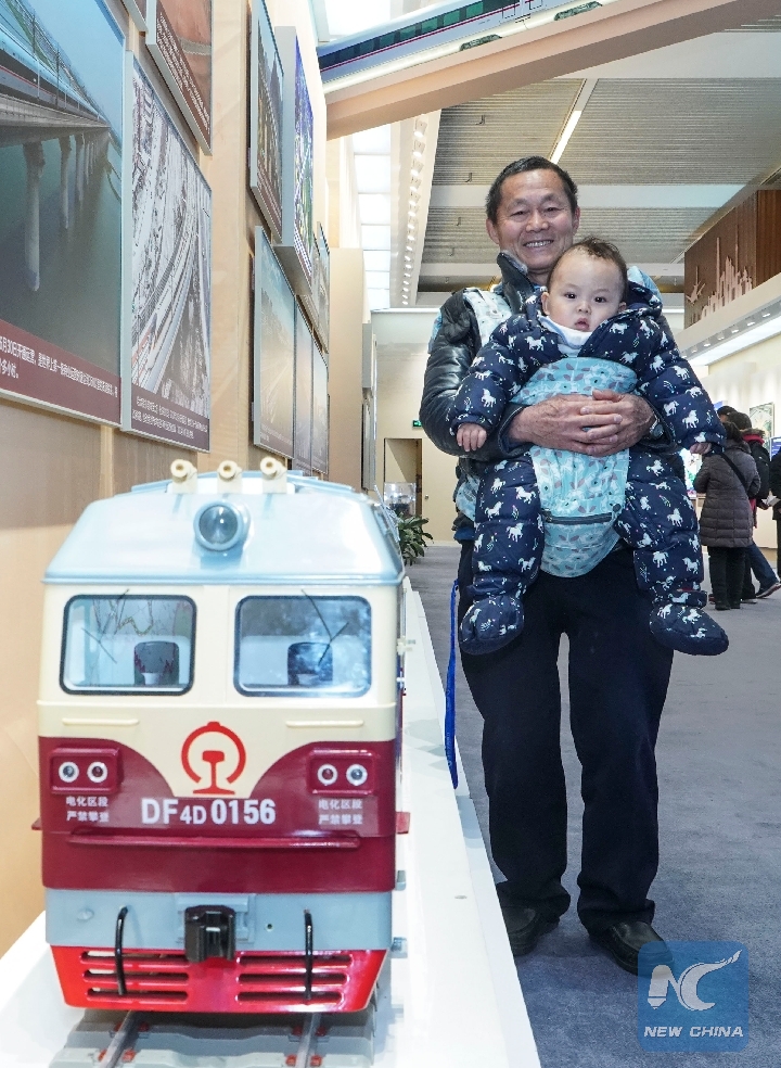 Visitors pose for photos at a major exhibition to commemorate the 40th anniversary of China's reform and opening-up at the National Museum of China in Beijing, capital of China, Dec. 27, 2018. (Xinhua/Yin Gang)