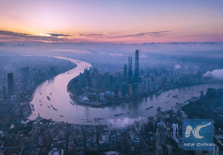 Aerial photo taken on June 21, 2018 shows morning view of the Lujiazui area in Pudong of Shanghai, east China. (Xinhua/Ren Long)