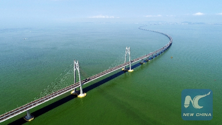 Aerial photo taken on July 11, 2018 shows the Hong Kong-Zhuhai-Macao Bridge. (Xinhua/Liang Xu)