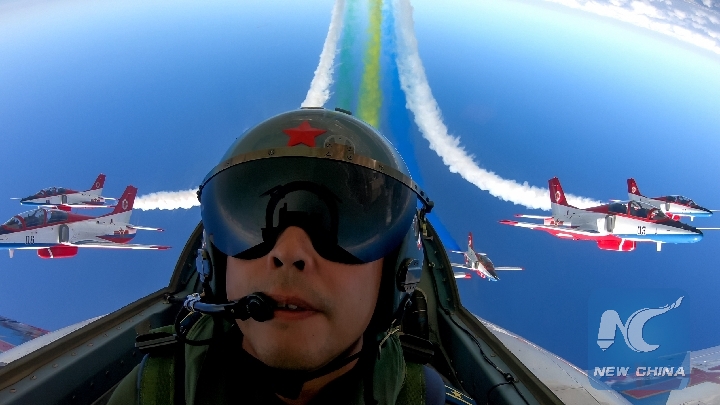 China's Hongying (Red Eagle) Aerobatic Team perform at the 12th China International Aviation and Aerospace Exhibition (Airshow China) in Zhuhai, south China's Guangdong Province, on Nov. 6, 2018. (Xinhua/Yang Pan)