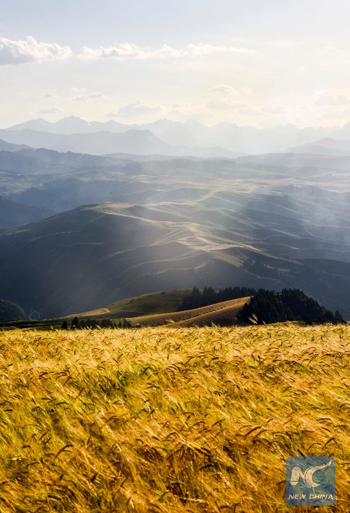 Photo taken on Aug. 26, 2018 shows mature wheat in a field of an agricultural park in Kazak Autonomous County of Mori, northwest China's Xinjiang Uygur Autonomous Region. (Xinhua/Zhao Ge)