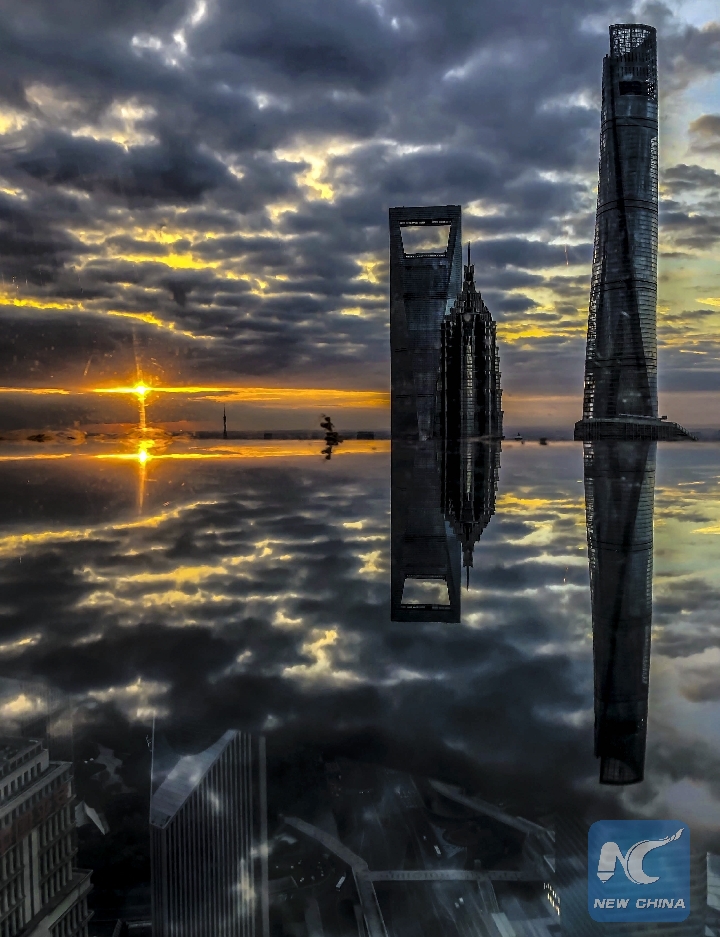 Photo taken on Nov. 2, 2018 shows skyscrapers at dawn in Shanghai, east China. (Xinhua/Yin Gang)