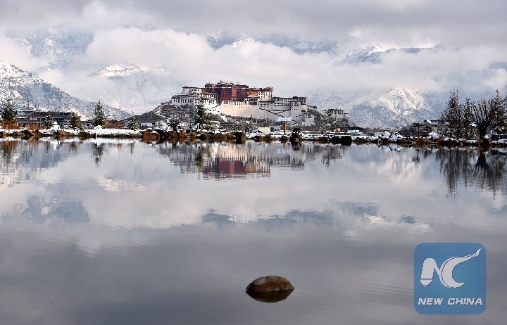 Photo taken on March 30, 2018 shows the Potala Palace after a snowfall in Lhasa, southwest China's Tibet Autonomous Region. (Xinhua/Chogo)