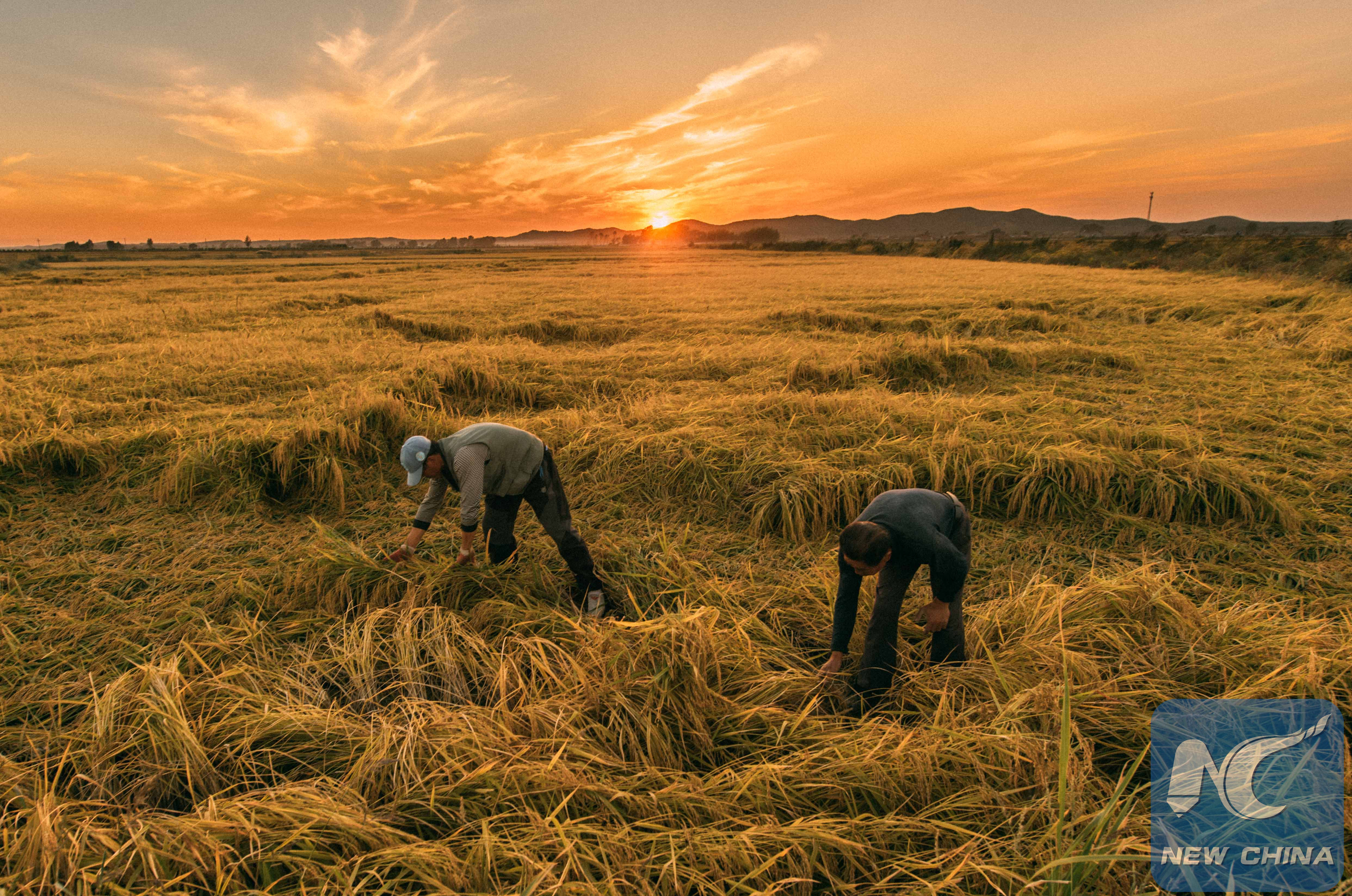 Farmers work at a rice field in Ping'an Township of Shulan City, northeast China's Jilin Province, Sept. 18, 2018. (Xinhua/Xu Chang)