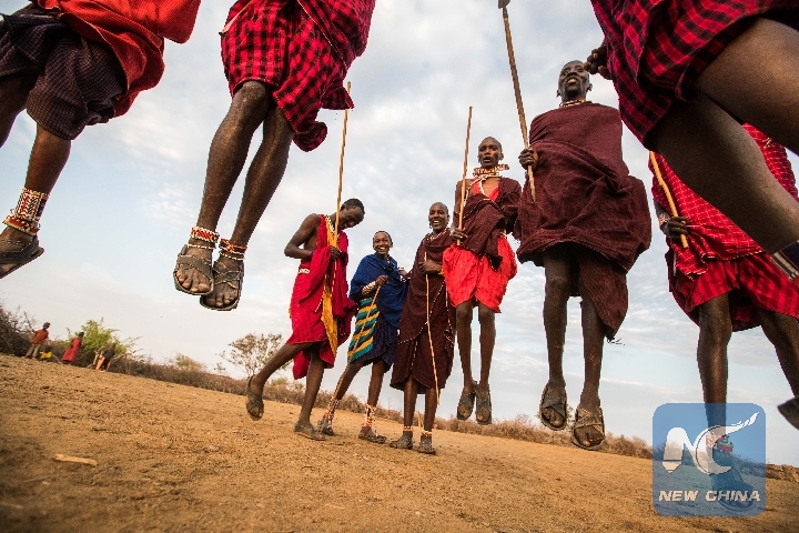 Masais perform traditional dance at a Masai village in Amboseli National Park, Kenya, Jan. 9, 2018. (Xinhua/Lyu Shuai)