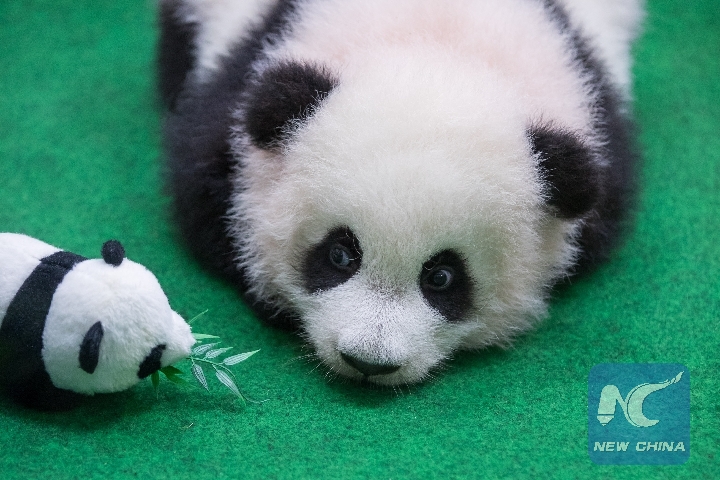 A female giant panda cub makes her first public appearance at the Malaysian national zoo near Kuala Lumpur, May 26, 2018. (Xinhua/Zhu Wei)