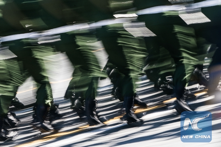 Russian soldiers take part in the Victory Day parade in Moscow, Russia, May 9, 2018. (Xinhua/Wu Zhuang)
