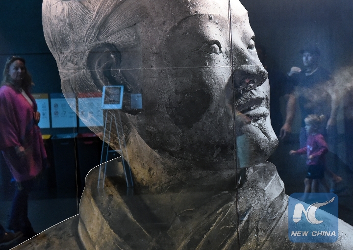 Visitors view the exhibits during the exhibition Terracotta Warriors: Guardians of Immortality at the National Museum of New Zealand in Wellington, New Zealand, on Dec. 15, 2018. (Xinhua/Guo Lei)