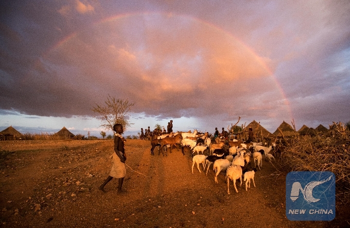 A Hamer villager herds goats at a Hamer village in Southern Regional State, Ethiopia, Oct. 25, 2018. (Xinhua/Lyu Shuai)