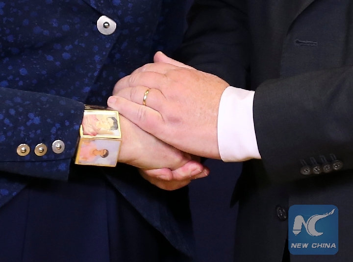 European Commission President Jean-Claude Juncker (R) shakes hands with British Prime Minister Theresa May during their meeting in Brussels, Belgium, on Nov. 24, 2018. (Xinhua/Ye Pingfan)