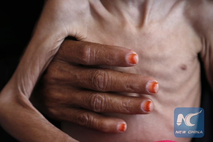 A malnourished child is seen at a hospital in Hajjah province, Yemen, Oct. 1, 2018. (Xinhua/Mohammed Mohammed)