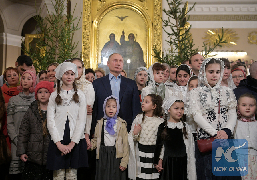 MOSCOW, Jan. 7 (Xinhua) -- Russian President Vladimir Putin on Monday congratulated all Orthodox Christians and Russian citizens celebrating Christmas by the old Julian calendar, the Kremlin said.