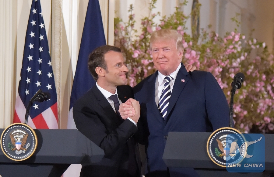 File Photo: U.S. President Donald Trump (R) and French President Emmanuel Macron attend a joint press conference at the White House in Washington D.C., the United States, April 24, 2018. (Xinhua/Yang Chenglin)