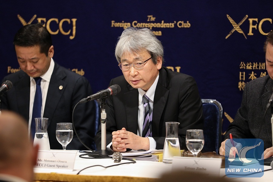 The photo shows Nissan Motor Co.'s former Chairman Carlos Ghosn's lawyer Motonari Otsuru (C) shares information at a press conference after the hearing held by Tokyo District Court in Tokyo, Japan, Jan. 8, 2019. (Xinhua/Du Xiaoyi)