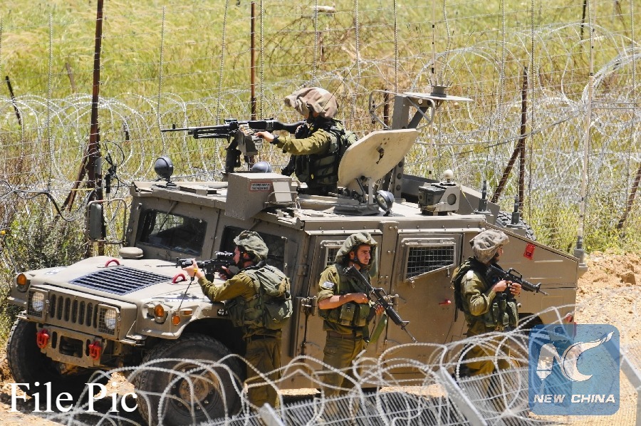 Israeli soldiers are seen at the cease-fire line between Israel and Syria during a demonstration to commemorate the anniversary of starting of the six-day 1967 Arab-Israeli war, on June 5, 2011. (Xinhua File photo)