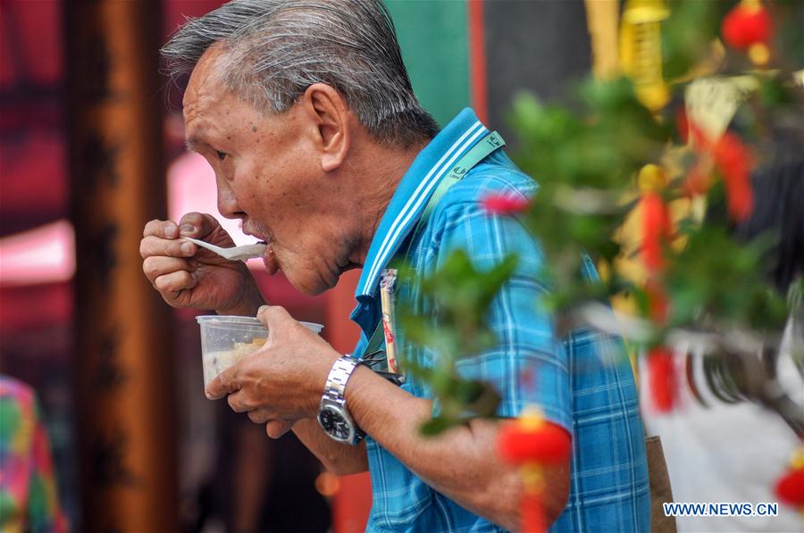 A man eats Laba porridge during the Laba Festival in Kuala Lumpur, Malaysia, Jan. 13, 2019. The Laba Festival, literally the eighth day of the 12th lunar month, is considered a prelude to the Spring Festival, or Chinese Lunar New Year. It is customary to eat Laba Porridge on this day. (Xinhua/Chong Voon Chung)