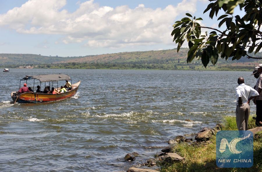 File photo shows tourists take boats at the north shore of Lake Victoria in Jinja of Uganda, where is the source of the River Nile, Oct. 24, 2009. (Xinhua/Liu Chan)