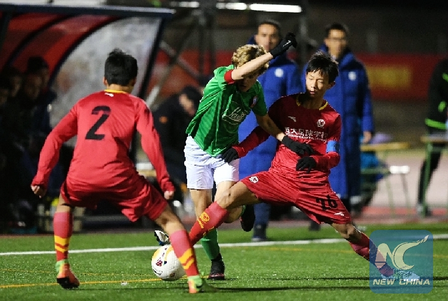 Guangzhou Evergrande U15 team beat Spain's Alcobendas Levitt 2-0 at the Evergrande-Madrid Championship in Madrid on January 15, 2019. (Xinhua/Guo Qiuda)