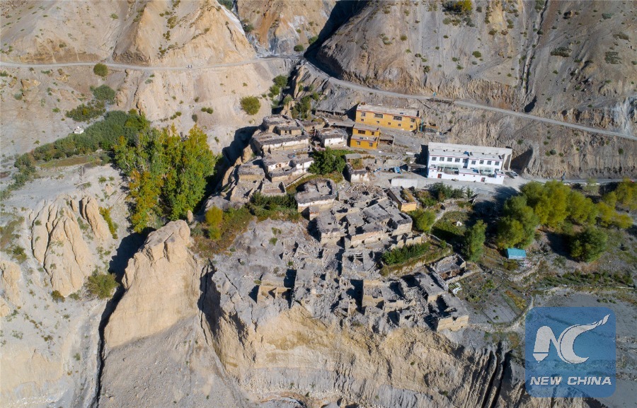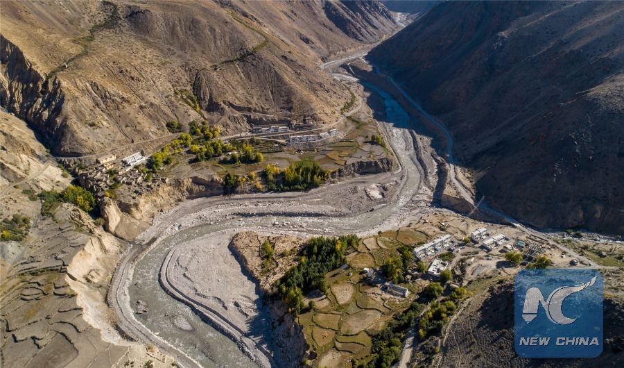 An aerial photo of Qusum village, Oct. 30, 2018. (Xinhua/Dainzin Nyima Choktrul)