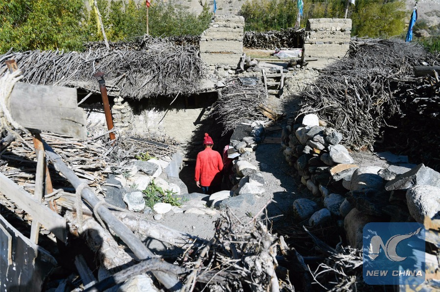 Ngoizhub Gyaco and his family's third home. After being hit by a flood, the house is not suitable for living any more, Oct. 30, 2018. (Xinhua/Liu Dongjun)