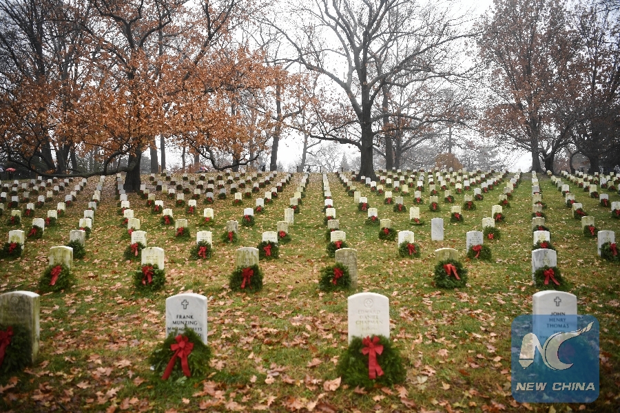 File Photo: Wreaths are laid at graves during Wreaths Across America Day at Arlington National Cemetery in Arlington, Virginia, the United States, on Dec. 15, 2018. (Xinhua/Liu Jie)