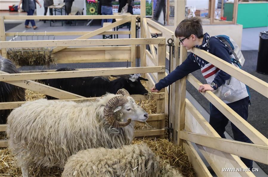 A boy feeds a goat during the International Green Week (IGW) Berlin in Berlin, capital of Germany, on Jan. 18, 2019. The IGW Berlin, an international exhibition of the food, agriculture and gardening industries, opened on Friday and will last until Jan. 27, attracting more than 1,700 exhibitors from all over the world. (Xinhua/Shan Yuqi)