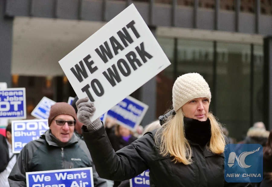 People hold placards during a rally to protest against the partial government shutdown at Federal Plaza in Chicago, the United States, on Jan. 18, 2019. (Xinhua/Wang Ping)
