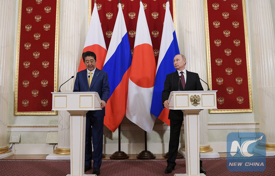 MOSCOW, Jan. 23 (Xinhua) -- Russian President Vladimir Putin and Japanese Prime Minister Shinzo Abe on Tuesday failed to reach a major consensus on decades-old territorial disputes that have mired peace treaty talks.