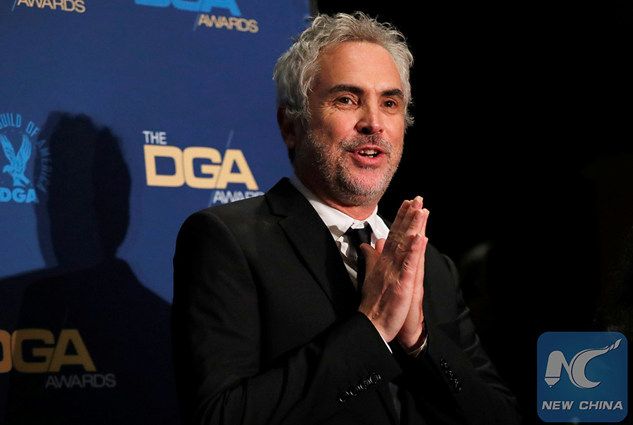 LOS ANGELES, Feb. 3 (Xinhua) -- Mexican filmmaker Alfonso Cuaron won the top film award for the monochromatic drama film "Roma" at the 71st Directors Guild of America (DGA) Awards held at the Hollywood and Highland Center on Saturday night.