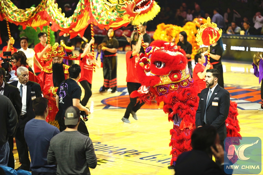 NEW YORK, Feb. 6 (Xinhua) -- The New York Knicks staged a Lunar New Year celebration as the team took on Blake Griffin and the Detriot Pistons for the first match of a home-and-home on Wednesday.