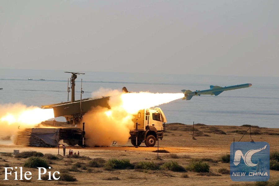 An Iranian missile is launched during Iranian naval maneuvers dubbed Velayat 90 in the Gulf of Oman, Iran, on Jan. 2, 2012. (Xinhua File photo)