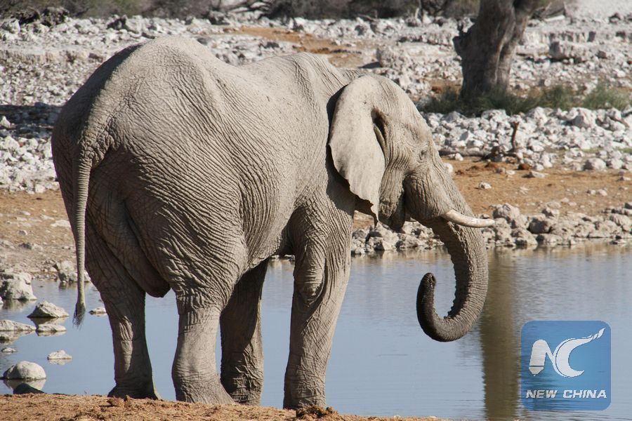 File photo shows elephants in the Etosha National Park, northwestern Namibia, Aug. 26, 2016. (Xinhua/Wu Changwei)