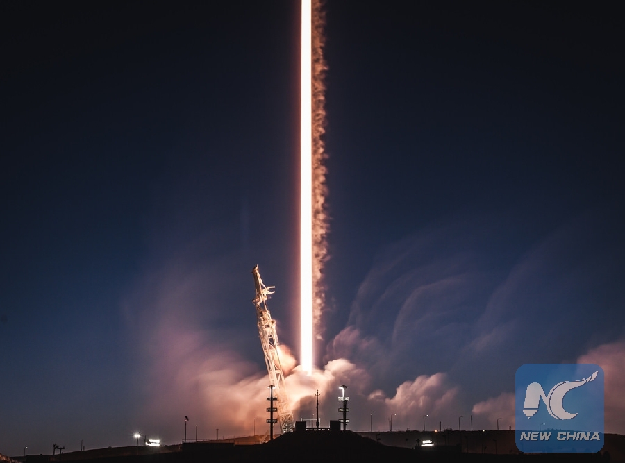 File Photo: A Falcon 9 rocket is launched with Spain's PAZ, a radar-imaging satellite, and two SpaceX test satellites for global broadband at Vandenberg Air Force Base in California, the United States, Feb. 22, 2018. (Xinhua/SpaceX)