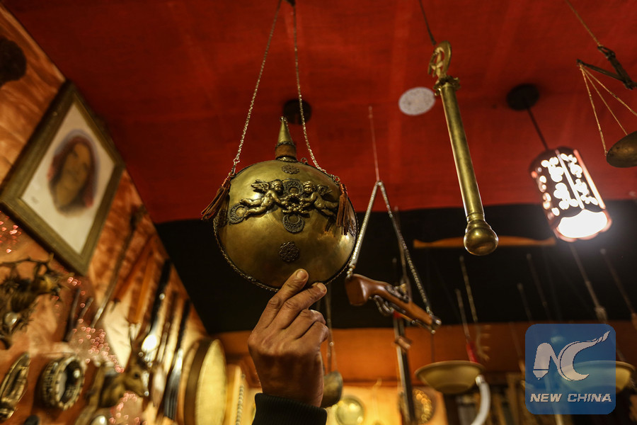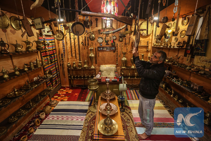 "I found some of the pieces buried under the dirt, while I bought others from popular markets," Musabeh told Xinhua as he dusted off copper dishes displayed at his home in Gaza city.