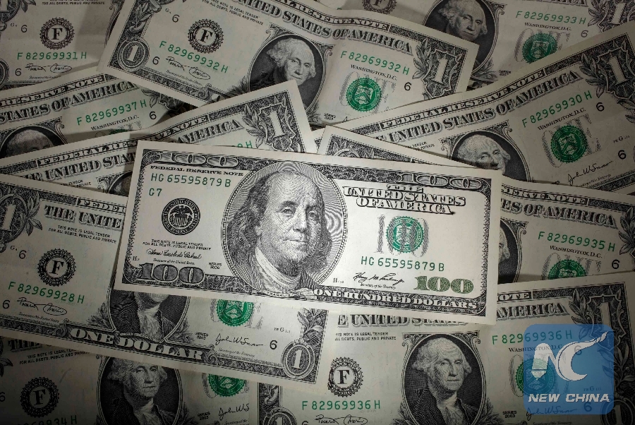 A picture illustration shows a 100 dollar banknote lying on one dollar banknotes, taken in Warsaw, Jan. 13, 2011. (Xinhua/REUTERS)