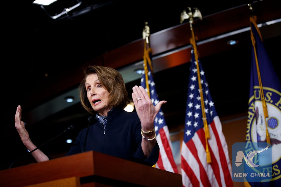 This file photo taken on Dec. 13, 2018 shows Nancy Pelosi speaking during a press conference on Capitol Hill in Washington D.C., the United States. (Xinhua/Ting Shen)