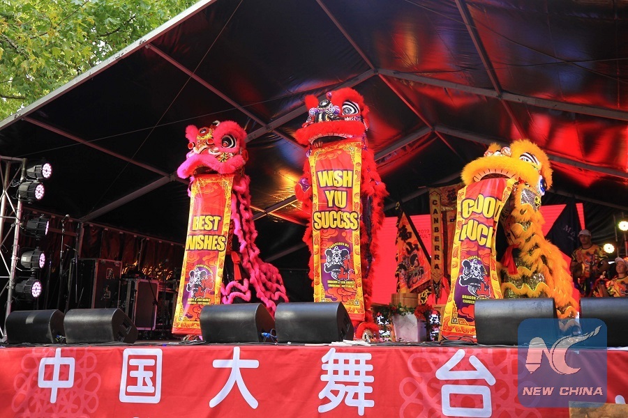 Artists perform lion dance at the 2019 National Multicultural Festival in Canberra, Australia, Feb. 16, 2019. (Xinhua/Pan Xiangyue)