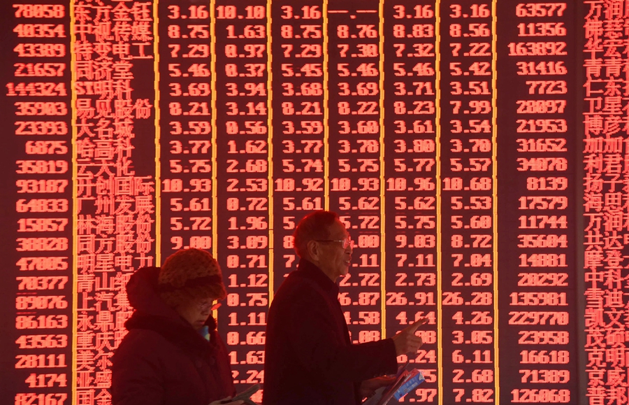Investors are seen at a stock exchange in Hangzhou, east China's Zhejiang Province, Feb. 11, 2019, the first trading day of the Year of the Pig. (Xinhua/Long Wei)